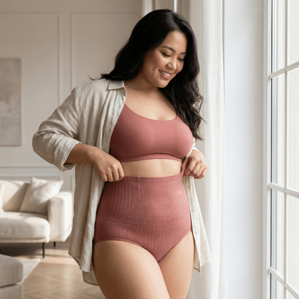 Calcinha modeladora plus size de cintura alta sem costura para ajuste firme, conforto diário e silhueta mais alinhada sob a roupa.